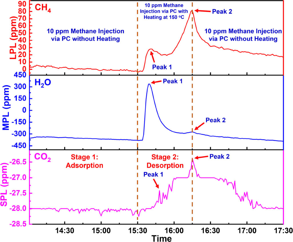 A preconcentrator coated with a mixture of metal-organic framework (HKUST-1) and polydimethylsiloxane (PDMS) can significantly improve the detection limit of NDIR sensor for methane.