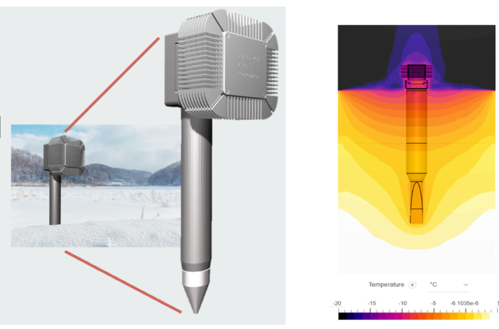 The necessary temperature difference is reached by installing a metallic rod in the ground and a heat sink above the ground. The metallic rod serves as a heat conductor that establishes the soil temperature on one side of the TEG. Heatsink in the air reaches the air temperature and imposes this temperature on the other side of the TEG. With state-of-the-art TEGs and power management units, usable power can be generated under a temperature of 8 Degree Celsius.